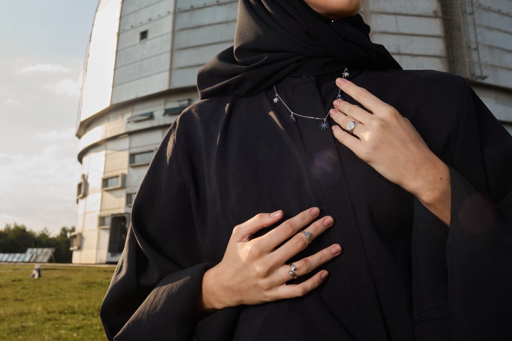 Ночь в горах особенная. Воздух прозрачный, и кажется, что до звезд можно дотянуться рукой. Здесь, в Карачаево-Черкесии, тишина не пугает, а лишь открывает пространство для созерцания. На съёмке коллекции Seda это ощущение стало особенно явным: здесь, среди гор и звездного неба, ясно чувствуешь, как ювелирное искусство перекликается с космосом, соединяя человека с его внутренним миром, культурой и памятью.